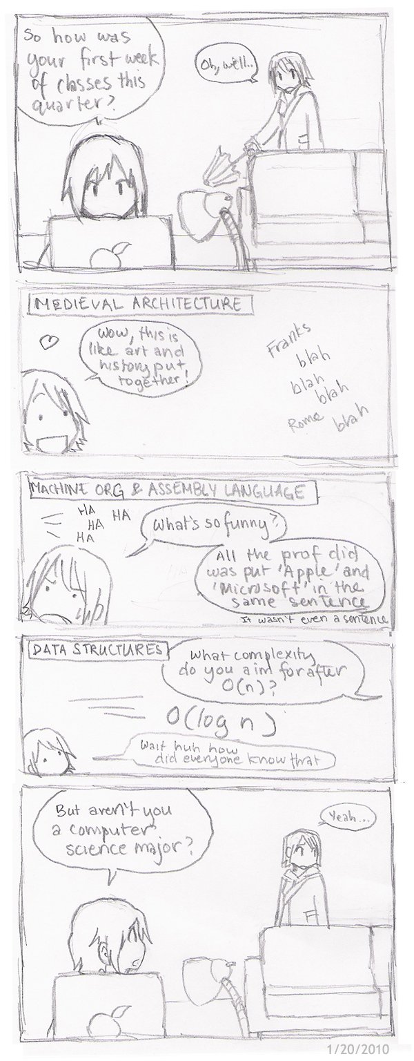 January 20th, 2010So this is my very first attempt at creating a comic series. It’s called Herogirl, and right now I’m basically forcing myself to not worry about whether I suck or not and am drawing in a sketchy 4-koma style BECAUSE I REALLY WANT TO MAKE A COMIC :O